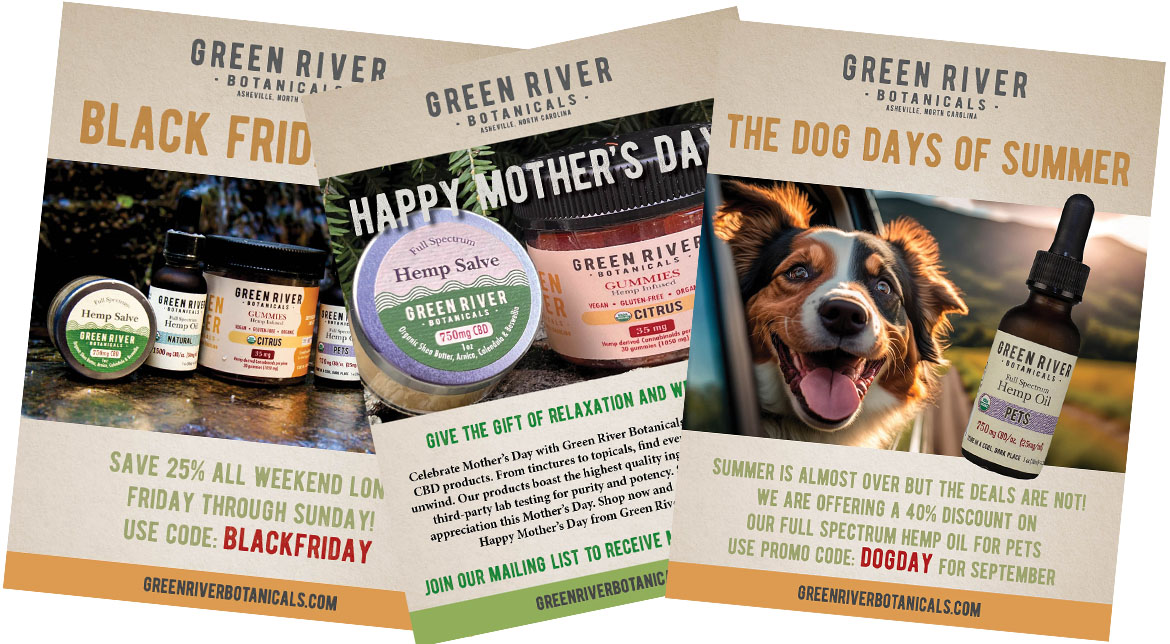 Primary designer and manager of the Green River Botanicals brand and website, overseeing packaging redesigns, product expansion, and ongoing brand refinement over a five-year period. Original brand identity created by Dan Peschio (Crooked Tree Creative). My role has focused on evolving, extending, and managing the brand across packaging and digital over time.